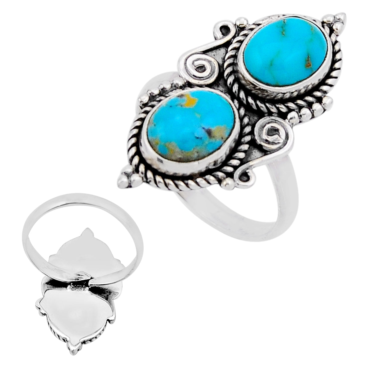 Bold and full of western character, this Genuine Mojave Turquoise Double Ring features two oval turquoise stones framed in twisted rope and swirl-set 925 sterling silver.